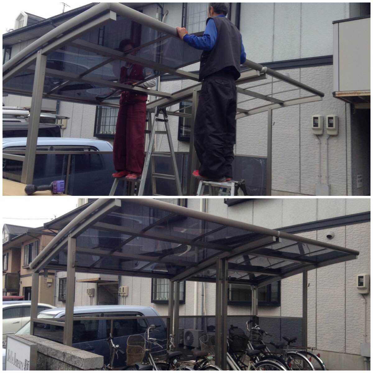 駅西新町のアパートでサイクルポートの入れ替えを行いました。撤去含めて1日で完了です❗️