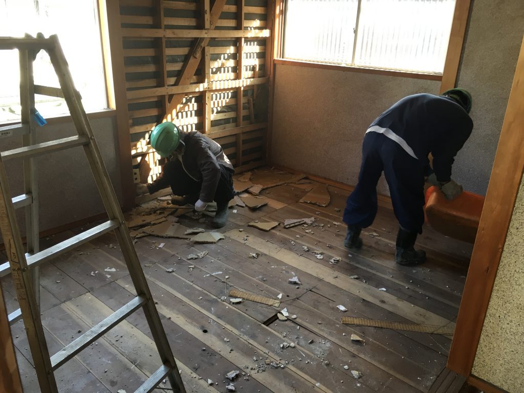 まずは内装の解体です。内装材を全て撤去していきます。